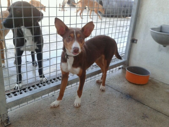 Esta linda perrita llamada GOYA, con unos dos mesecitos, la dejaron atada a la cancela de la