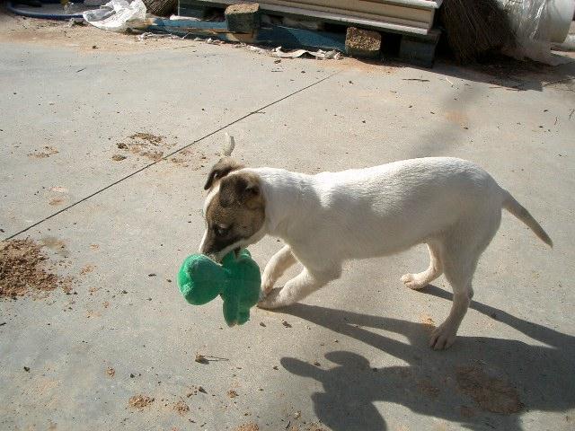 Historia de Titín: HOLA LOLY! . TINTÍN SIENDO TAN PEQUEÑO YA HA TENIDO LA MALA SUERTE DE SER MALTRATADO TANTO MENTAL COMO FISICAMENTE. AUNQUE TODAVIA POR SU CORTA EDAD NO TIENE DAÑOS PSICOLOGICOS.HEMOS ENCONTRADO SIGNOS DE HABER ESTADO ATADO SIEMPRE, CASI DESDE QUE FUE DESTETADO.TIENE UNOS DOS MESES Y MEDIO APROXIMADAMENTE DE EDAD. ES MACHO Y SEGUN SUS CARACTERISTICAS FISICAS PUEDE SER CRUCE DE BODEGUERO. ES MUY CARIÑOSO Y SOLO QUIERE QUE JUEGUEN CON EL Y POR SUPUESTO QUE LO MIMEN. EL NOMBRE QUE SE ME HA OCURRIDO ES TITIN.AQUI TE MANDO CUATRO FOTOS. ESPERO QUE SE ADOPTE PRONTO, EL SITIO DONDE LO TENGO NO ES MIO, ASI QUE ESTÁ DE "PRESTAO" Y NO SÉ HASTA CUANDO PODRÉ TENERLO ALLI. SI NECESITAS ALGO MAS, DIMELO CUANTO ANTES.