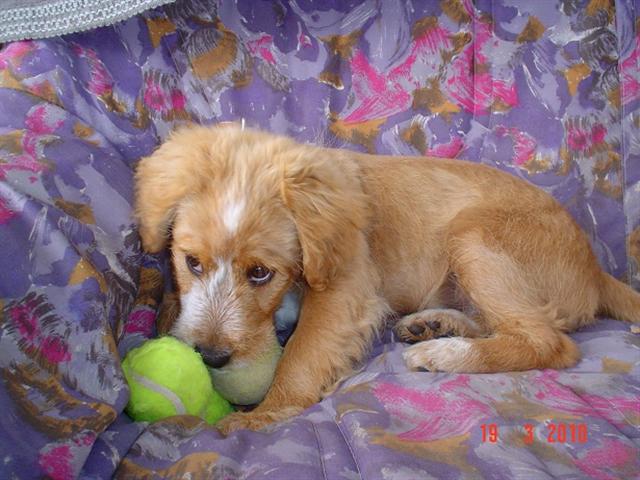 Hola!. Me llamo Tobi y tengo sólo cuatro meses. Soy muy juguetón y revoltoso. Me encantan las pelotas de tenis para jugar y me gustaría que tú me adoptaras. Una señora me encontró en un contenedor y me salvó de morir y enfermar. Ella y sus hijos me quieren mucho pero como soy tan revoltoso y dinámico no puedo vivir en un lugar tan reducido. Necesito espacio para jugar. Dicen que soy muy guapo y saltarín. ¿Te gustaría adoptarme?. Te haré muy feliz y te reirás conmigo porque soy muy divertido.