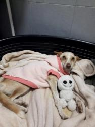 Ana es una preciosa perrita rescatada en unas condiciones lamentables, no podía sostenerse en pie de lo débil que estaba, tiene herídas enormes en el cuello , en estos momentos se encuentra en una casa de acogida recuperándose, buscamos un buen hogar para ella, merece conocer un buen hogar que la cuide como merece.-