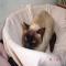 Celeste apareció abandonada en la puerta del supermercado del Mercadona. Un chico se acercó a tocarla y ella se dejó mansamente. Parecía como si la acabaran de dejar allí. Le dió pena y se la llevó a casa de su novia. Allí había un perro y se adaptaron perfectamente los dos. El problema es que había una persona que no la quería y la han tenido que traer a la protectora. Es mimosa, cariñosa y muy tímida.