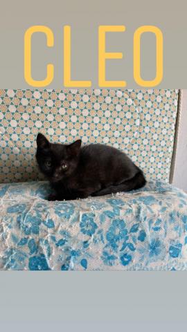 CLEO, nació junto con sus hermanitos en un jardín del pueblo. La encontraron unos niños. Uno de sus hermanos murió. Ahora ellos y su mami estàn en una casa de acogida.