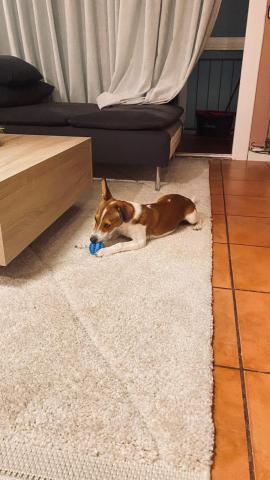 Henry es muy juguetón, cariñoso y le encantan los mimos, pero también es muy independiente y le gusta correr rápido por los olivares y el jardín. Vuelve cuando lo llaman. Le encanta el agua y le gusta jugar con los gatos. También juega con los perros grandes: mastines, labradores y pastores. Viaja bien en coche. Ya tiene su primera vacuna y desparasitaciones.