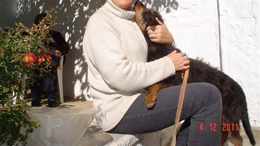 Sopli fue mordido atrozmente por otros dos perros en el refugio.El tiene un carácter muy metebocas y por eso le atacan tanto. Estaba tan grave y tan aterrado que me lo llevé a mi casa para recuperarlo. Cuando ya estaba feliz y completamente bien comenzó a meter boca a otros perros que tego de acogida en mi casa. En casa entra y sale mucha gente por eso es fácil escaparse de allí. Un día cuando llegué del trabajo no estaba. Lo he buscado desesperadamente pero se ha escapado y no ha vuelto. Creo que ha decidido no volver.
